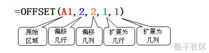 Offset(原始區(qū)域,偏移幾行,偏移幾列,擴展為幾行,擴展為幾列)