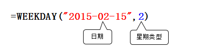 WeekDay(日期,星期類型)