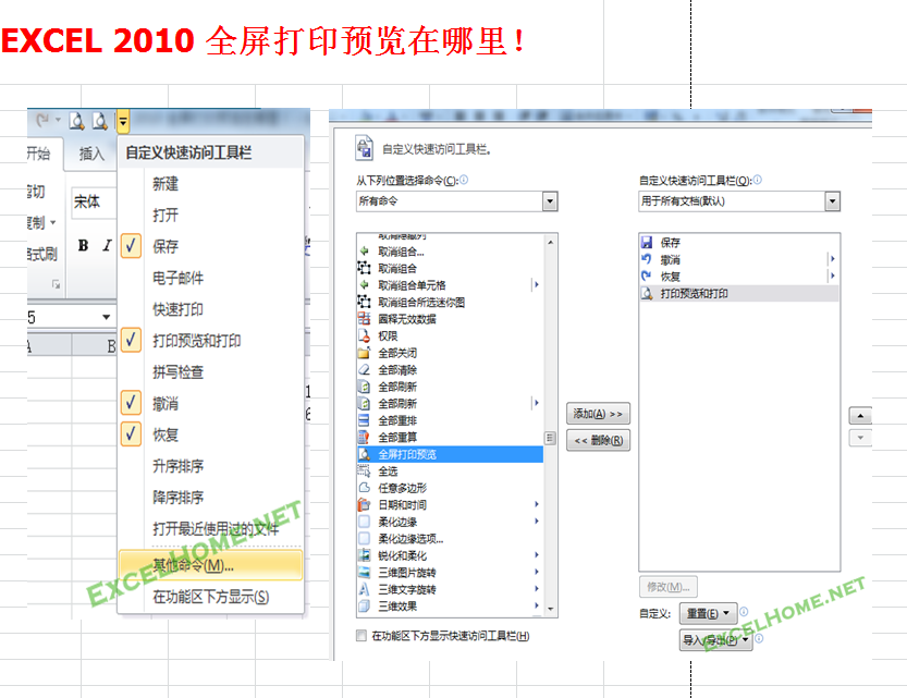 EXCEL 2010 全屏打印預(yù)覽在哪里!很多人肯定也有次煩惱?