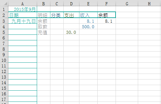 就是指的支出或收入那兩列,兩列中只要有一列行中有數(shù)據(jù),支出或收入,余額就顯示出來,再?zèng)]有數(shù)據(jù)操作的行中應(yīng)該不顯示余額,但因?yàn)槲也粫?huì)弄,用的自動(dòng)填充,所以余額那列里填充過的行都有數(shù)據(jù),就是能給我加個(gè)判斷就好了,例如F5(default null),IF(E4≠NULL||D4≠NULL)SET F5=(F4+E4-D4 ) ,當(dāng)然excel的語句肯定不是這樣寫