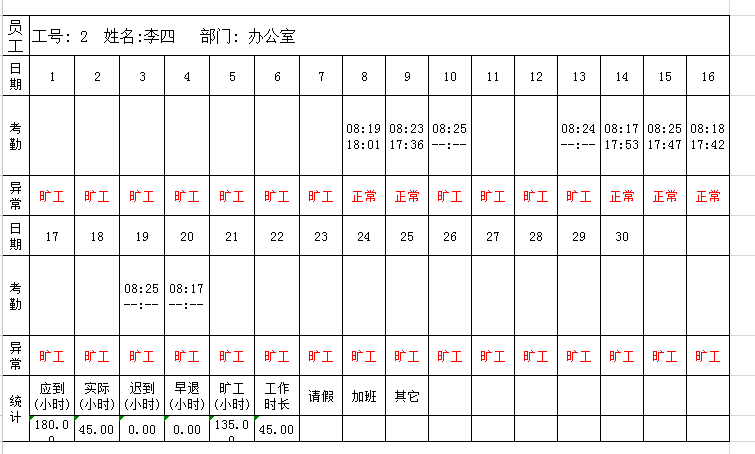 樓主 我看了你的表格,現(xiàn)在能否用李四,你做一個(gè)完整的例子給我看