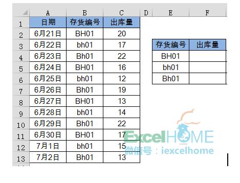 要求根據(jù)E列的存貨編號,在F列匯總每種存貨的出庫總數(shù)。