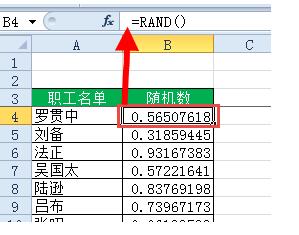 在Excel中制作隨機抽獎的效果,核心是生成一組隨機不重復(fù)值。首先,在B4輸入以下公式,向下復(fù)制至B53: