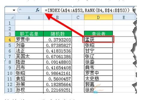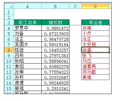 注意,抽獎結(jié)果生成后不能再進行編輯公式或是雙擊等激發(fā)重新計算的動作,否則抽獎結(jié)果會發(fā)生變化。