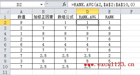 =RANK.AVG(A2,$A$2:$A$10,0)