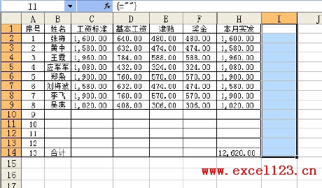 例如要保護(hù)的區(qū)域?yàn)?span>A1:H14,可以先選擇I1:I14,輸入上述數(shù)組公式。