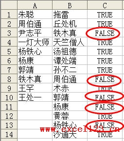 回車后雙擊填充柄,將公式填充到C2:C14區(qū)域。可以看到重復(fù)的數(shù)據(jù)在C列中都顯示為“FALSE”,而不重復(fù)的數(shù)據(jù)都顯示為“TRUE”。
