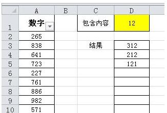 例如要查找A列包含“12”的數(shù)據(jù),在D1中輸入“12”即可。