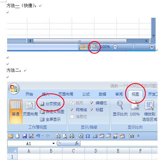 EXCEL2007分頁預覽的切換方式在工作表的右下方,如圖所示。