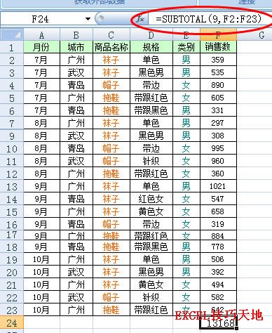 除了手工輸入公式外,還可以使用下面更為快捷的方法:1.先在A1:F23區(qū)域中進(jìn)行任意篩選操作。