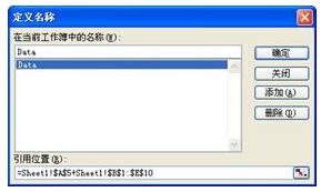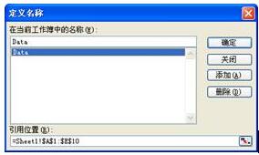 在通常情況下,用戶會在編輯名稱引用時遇到一些麻煩。比如,圖81-1中顯示了一個已經(jīng)存在的名稱,該名稱的引用位置內(nèi)容是:=Sheet1!$A$1:$E$10