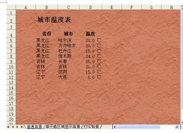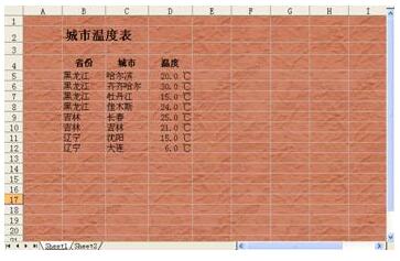 圖76-1 在工作表中使用背景圖片為了讓背景與工作表內(nèi)容更和諧,有時需要關(guān)閉工作表的網(wǎng)格線顯示,因為網(wǎng)格線會顯示在背景圖片上方,破壞美感。關(guān)閉工作表網(wǎng)絡(luò)線顯示的方法是:單擊菜單“工具”→“選項”,在“選項”對話框的“視圖”選項卡中,清除“網(wǎng)格線”復(fù)選框,單擊“確定”按鈕,效果如圖76-2所示。