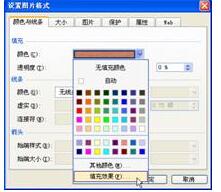 圖76-4 設(shè)置鏈接圖片的格式在“設(shè)置圖片格式”對話框中選擇“顏色與線條”選項卡,單擊“填充”→“顏色”選項的下拉箭頭,選擇“填充效果”,如圖76-5所示。