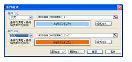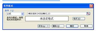 在“條件格式”對話框中單擊“添加”按鈕,單擊“條件2(2)”的下拉箭頭,在列表中選擇“公式”項,在右邊的文本框中輸入公式: