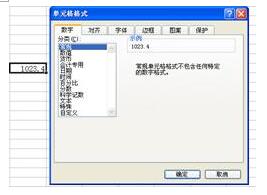 Excel內(nèi)置的數(shù)字格式多種多樣,能夠滿足用戶在一般情況下的需要。下面用幾個(gè)例子來說明同樣的數(shù)字被設(shè)置為不同的數(shù)字格式后,顯示效果會(huì)有哪些改變。假設(shè)一個(gè)單元格中有數(shù)字1023.4,在默認(rèn)情況下,Excel不對單元格設(shè)置任何數(shù)字格式,此時(shí)的格式名稱為“常規(guī)”,數(shù)值按照它的真實(shí)面貌顯示出來。用戶在“單元格格式”對話框的“數(shù)字”選項(xiàng)卡中可以看到一個(gè)“示例”項(xiàng)目,它可以在用戶單擊“確定”按鈕以前就顯示當(dāng)前單元格的數(shù)值在應(yīng)用了指定的數(shù)字格式以后的樣式,如圖68-2所示。