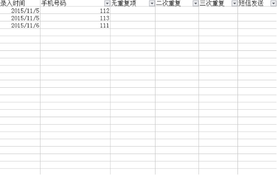 3.【二次重復(fù)】是指在顯示出【手機號碼】這一列中二次重復(fù),不包括無重復(fù),三次及以上重復(fù)