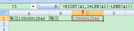 姓名在左邊,用Left函數(shù);電話號碼在右邊,用Right函數(shù)。