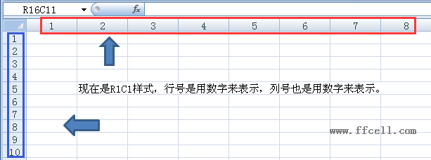比如列號(hào),在R1C1引用樣式下,列號(hào)還是按數(shù)字1 2 3 ...來表示,但在A1引用樣式下,列號(hào)用字母A B C...來表示。