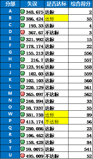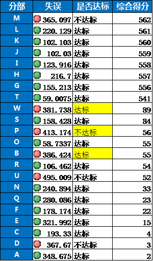 以這個(gè)表為例,圖一為原表,失誤列的前面的綠燈代表達(dá)標(biāo),紅燈代表不達(dá)標(biāo),是否達(dá)標(biāo)是做的文本說(shuō)明,標(biāo)黃的部分是失誤值小于等于400為達(dá)標(biāo),未標(biāo)黃的指失誤值小于等于360為達(dá)標(biāo)。以綜合得分來(lái)排序(圖二), 失誤列的圖標(biāo)就會(huì)顯示錯(cuò)誤(每個(gè)分部的失誤標(biāo)準(zhǔn)不一樣 設(shè)定條件后拍下 單元格的格式不會(huì)發(fā)生變化 導(dǎo)致以錯(cuò)誤的標(biāo)準(zhǔn)來(lái)去顯示是否達(dá)標(biāo)) 以W分部為例 失誤值小于400為達(dá)標(biāo) 排序后按照原單元格設(shè)定的失誤值小于360為達(dá)標(biāo)了 怎么保證顯示的燈和我排序前的設(shè)定的條件不變的情況下 進(jìn)行排序呀