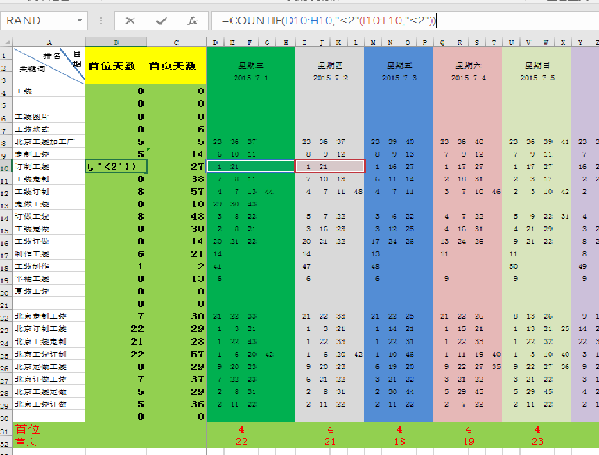 再看外層,每次偏移就countif 一下 小于10天的單元格個數(shù)