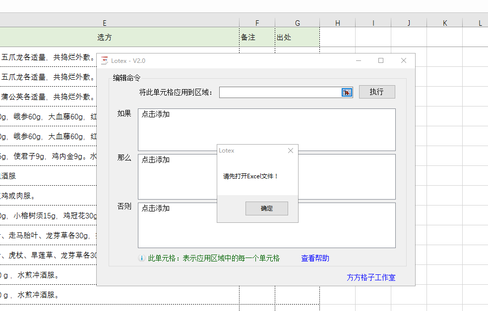 打開lotex的時候,選取單元格提示說請先打開excel文件