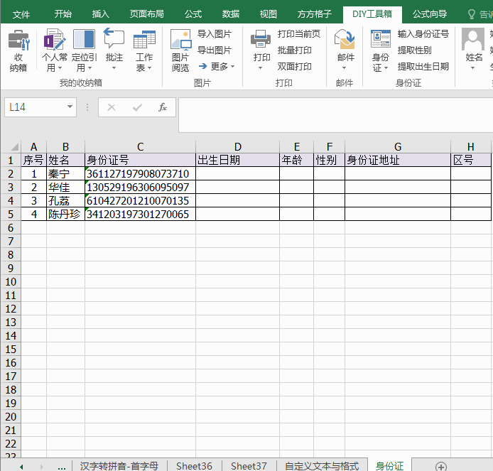 從身份證信息中批量提取出出生日期,年齡,性別,地址,區(qū)號等,請看動畫: