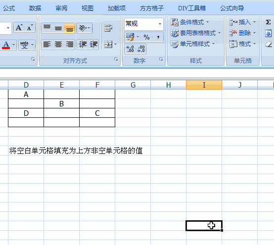 1.將空白單元格填充上方非空單元格的值