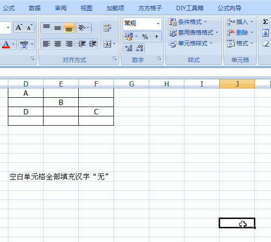 3.將空白單元格填充指定值