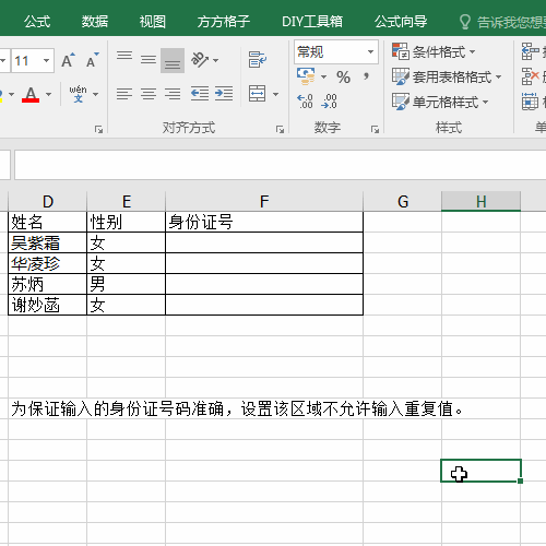 在錄入數(shù)據(jù)時(shí),有時(shí)候這些數(shù)據(jù)是不允許重復(fù)的,因?yàn)橹貜?fù)就意味著出錯(cuò),那么我們就直接將要錄入的單元格區(qū)域設(shè)置不允許輸入重復(fù)值,具體方法,請(qǐng)看動(dòng)畫: