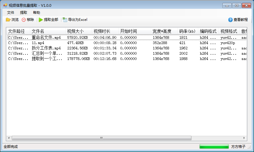 提供視頻文件信息的批量提取功能,支持導(dǎo)出為Excel。