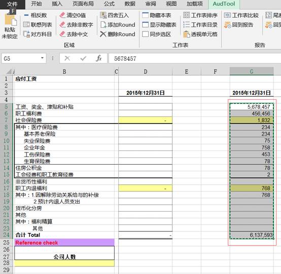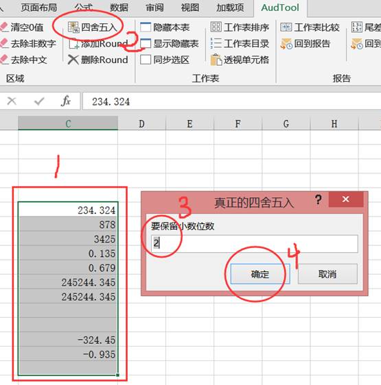 在編制底稿、報(bào)表、和附注的時(shí)候經(jīng)常需要統(tǒng)一保留小數(shù),但是excel自帶的功能只能設(shè)置顯示的小數(shù),但是更多的小數(shù)位只是被隱藏了,導(dǎo)致計(jì)算報(bào)表結(jié)果經(jīng)常出現(xiàn)尾差。該四舍五入功能可以將其直接轉(zhuǎn)換成想要的小數(shù)位數(shù)的值。