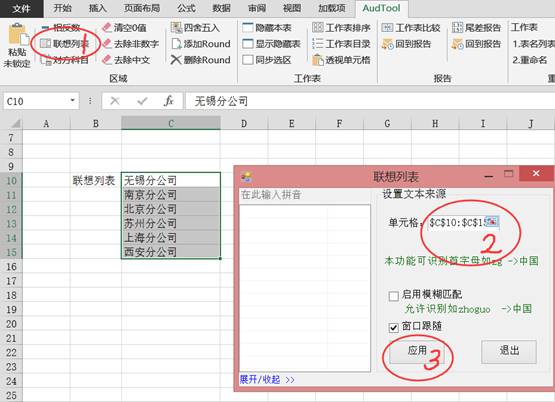 1.點(diǎn)擊【聯(lián)想列表】-設(shè)置聯(lián)想文本來源,選擇單元格區(qū)域【單元格】---啟用模糊匹配,則可以模糊查詢選擇錄入---點(diǎn)擊【應(yīng)用】