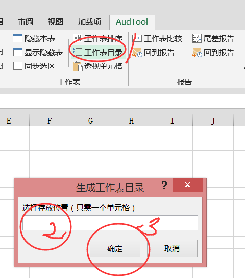 點(diǎn)擊【工作表目錄】-鼠標(biāo)點(diǎn)選單元格【選擇存放位置】--確定