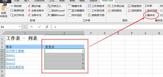 工作簿中有很多工作表,我們的底稿索引號(hào)是擁有規(guī)則的,或者我們想改變規(guī)則,這時(shí)候就用這個(gè)功能批量重命名打開工作簿中的工作表名稱。設(shè)計(jì)的方法是,先獲取目前的工作表名稱,然后在對(duì)應(yīng)的同一行中輸入新的名稱,然后改為新的名稱。