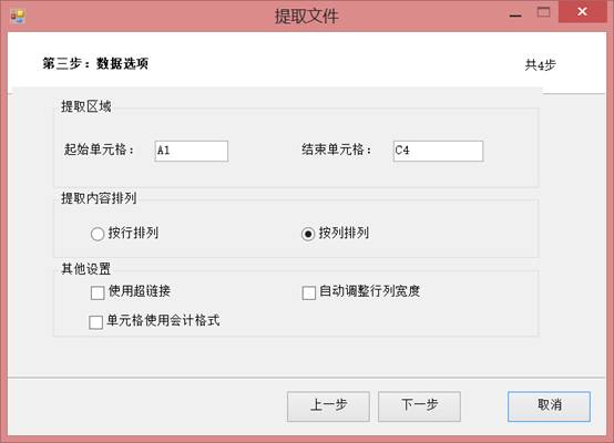 最后一步,設(shè)置我們要在選擇的工作表中提取的區(qū)域,輸入提取的“起始單元格”和“結(jié)束單元格”,這樣就劃定了我們要提取的區(qū)域,提取的結(jié)果會(huì)匯總到一張新建的工作表中,但是由于提取的是若干公司的報(bào)表相同指定區(qū)域,因此要如何排列提取的內(nèi)容在新的工作表中,需要勾選“按列排列”“按行排列”,前者量每一個(gè)提取的內(nèi)容按列向右排開,后者將每一個(gè)提取的區(qū)域按行向下羅列。最后“其他設(shè)置”,勾選“使用超鏈接”將在匯總表中提取到的區(qū)域與源文件建立超鏈接自動(dòng)更新,“自動(dòng)調(diào)整行列寬度”可以對(duì)提取的內(nèi)容自動(dòng)調(diào)整行列款,以免顯示格式過窄,勾選“單元格使用會(huì)計(jì)格式”將現(xiàn)實(shí)的提取數(shù)字更加規(guī)范。