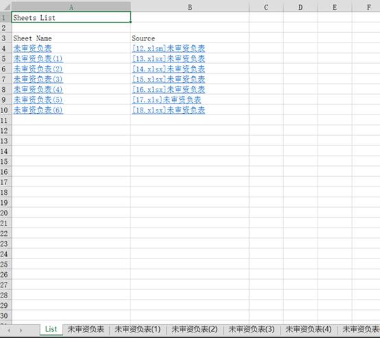 該功能可以提取文件夾中指定若干文件的相同表格的相同區(qū)域,并連續(xù)放置在同一個(gè)工作表中,并與源工作表建立超鏈接。此功能可以用于合并報(bào)表,合并附注等。